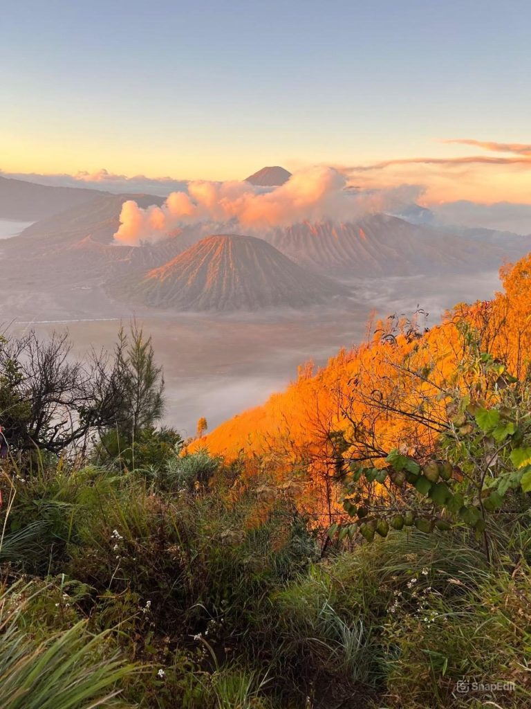 ## 🌋 2. 朝焼けの **ブロモ山とトゥンパックセウ千条の滝**